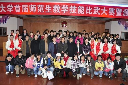 我院向晓芳、印唱及来自外国语学院的王爱娟、魏浓、化工学院胡鸿燕、物信学院刘赞六人经过初赛、复赛、半决赛多番考验,闯入此次总决赛。他们轮番上台结合精心制作的多媒体课件对所选篇目进行说课。向晓芳凭着对《再别康桥》熟练地解析、透彻地讲解,充分实现有效教学的优异表现赢得了评委及观众的亲睐和掌声。其他选手也精彩地展示了自己的教学技能,上演了一场教学盛宴。