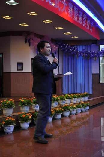 颁奖仪式中,评委代表丁畅松发表讲话。他对组织者的认真组织、对选手的准备充分表示感谢,在点出“讲课”与“说课”的不同后,他对选手说课中表现出的高素质表示赞赏,称赞选手们“教学生动,把握准确,教态自然,言行规范”,并教导同学们学无止境,教无止境。