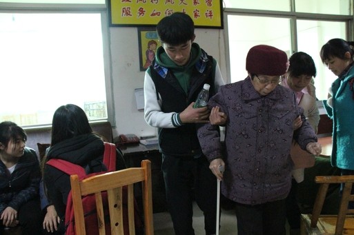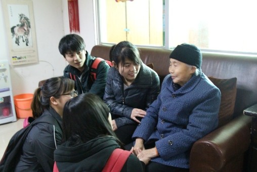 我院学子在福利院嘱咐老奶奶多多注意身体(安昭旭/摄)