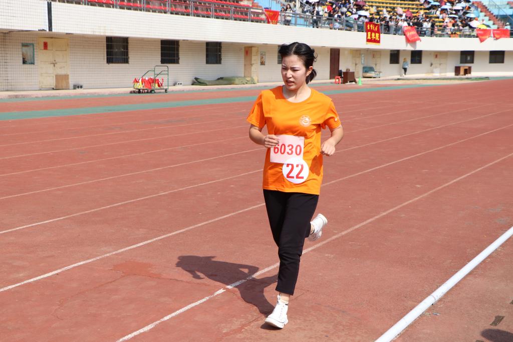 千米赛场上散发着严肃的气氛,我院啦啦队“亚亚,加油!”的声音响彻云霄。每一步都铿锵有力,每一次摆臂与呼吸都让她的眼神更加坚定。在比赛途中,长时间的奔跑使她双手扶膝,呼吸急促。这一刻,周围的鼓励使她再次挺起胸膛,义无反顾地冲向终点。