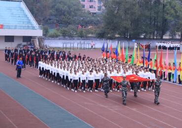 图为方阵队队形 与往年不同,在我院同学方阵队后面,一群身着“青春活泼”的运动服的手拿鲜艳国旗的老师迎面走来,他们是我院教职工代表队,展现了我院教师的风采。
