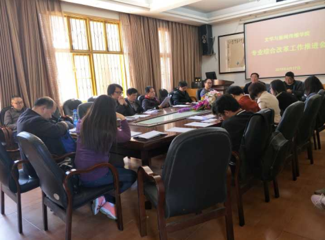 本网讯(通讯员 杨晓维 王捷)我院于4月17日在砂子坳校区影视鉴赏室召开了专业综合改革工作推进会。我院党委书记田茂军、院长罗惠缙、副院长王焕林、副院长彭广林以及新闻系专业主任李端生、汉语言文学专业主任张利玲等领导老师出席了本次会议。本次会议由罗惠缙主持。
