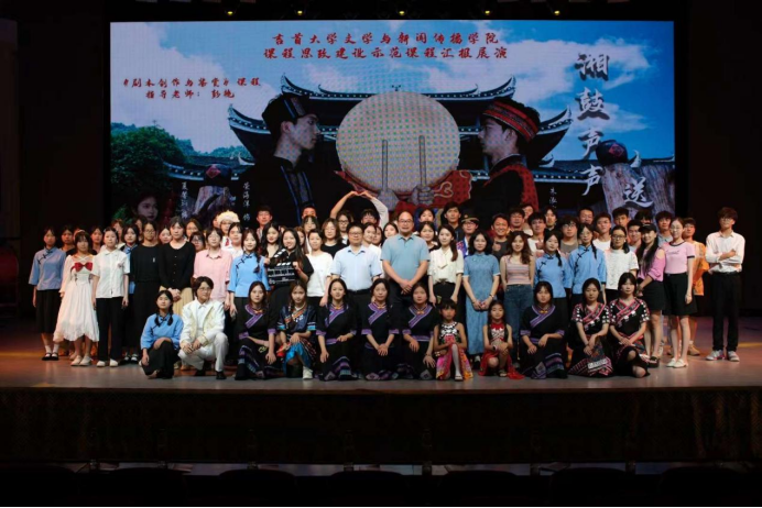 本网讯(通讯员陈瑶瑶)为迎接庆祝中国共产党成立102周年大会,赓续红色血脉,弘扬优良传统,激励青年担当作为,7月1日晚上,文学与新闻传播学院在学校演奏厅开展了2022级网络与新媒体专业《剧本创作与鉴赏》课程的汇报展演,演出由教工党员彭艳同志指导完成。本次展演作为学院教工党支部特色实践活动之一,旨在挖掘课程思政内涵,推进第一课堂和第二课堂协同育人。学院党委书记彭广林、党委副书记段武城及全体教工党员受邀出席观看演出。