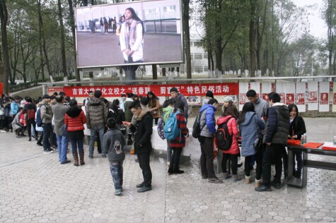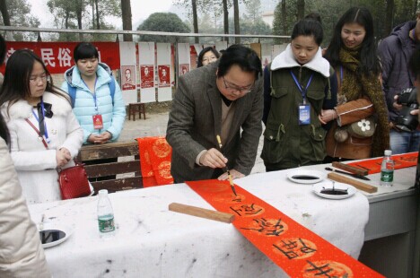 本网讯(通讯员 李艾玲)为响应文化立校号召,12月27日上午,由我院民俗学社承办,我校党委宣传部、教务处、素质教育中心、共青团委员会、社会科学处、关工委及我院主办的“送春联,剪窗花”特色名俗活动在砂子坳校区启明广场举行。活动的主题为“文化立校,承载国粹精华;育德立人,弘扬民族传统”。