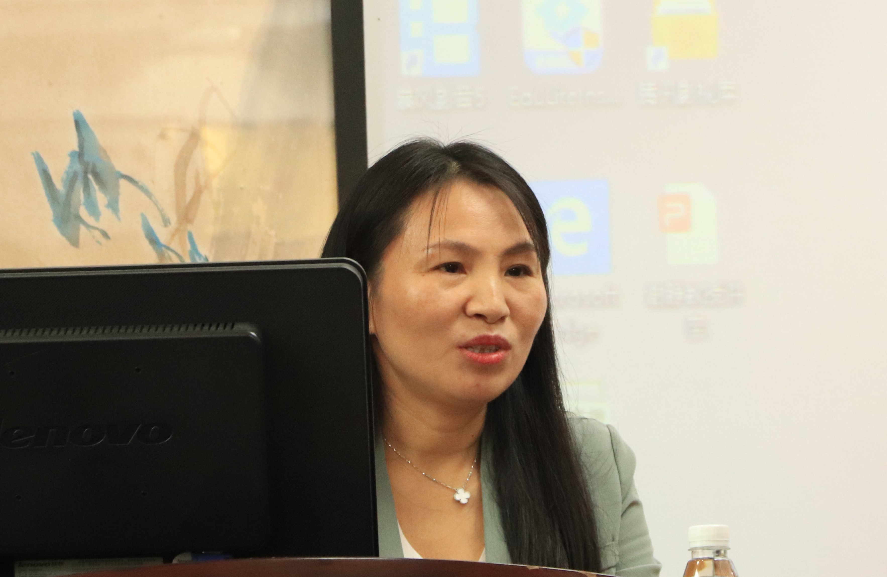 田茂军老师、陈文敏老师以及粟龙梅老师分享经验与心得。田茂军讲到:“课堂教学的重点在学生,要善于引导学生发散思维,要学生积极地参与到课堂教学中来。”并以自己的课堂经验提出,家乡民间文学要做好三个保障,即教师将相关教学资料传授给学生、要求学生搜集家乡民间文学作品、认真点评学生作业。陈文敏代表新闻专业教师谈论到:“老师要及时进行知识更新,保证课堂的高阶性。不仅如此,老师要选择有说服力的个案,将理论与实际相结合,提高学生的思辨能力。”粟龙梅指出课堂教学信息化的有效性:“课堂软件的合理应用不仅能够增强课堂的趣味性,而且能够提高学生的注意力,从外部辅助方面提升教学效果。”