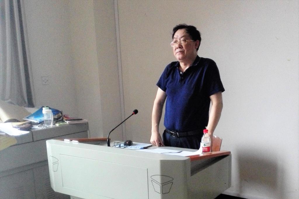 | 图为 唐正鹏正在讲座 |