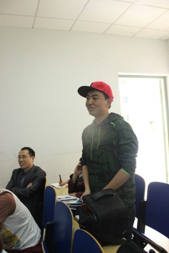 随后进入提问环节,先后有七名同学从语文教学的各方面进行提问。有位同学问到如何从学生身份转换到教师的角色。谷春明回答道,生存与发展是大学生着重考虑的问题,在大学这四年,要确立一个目标,要为自己的梦想做好计划,然后一步步努力,从而完成角色转换。谷春明精彩的解答一气呵成。整个讲座过程生动幽默,不时赢得场下阵阵掌声。