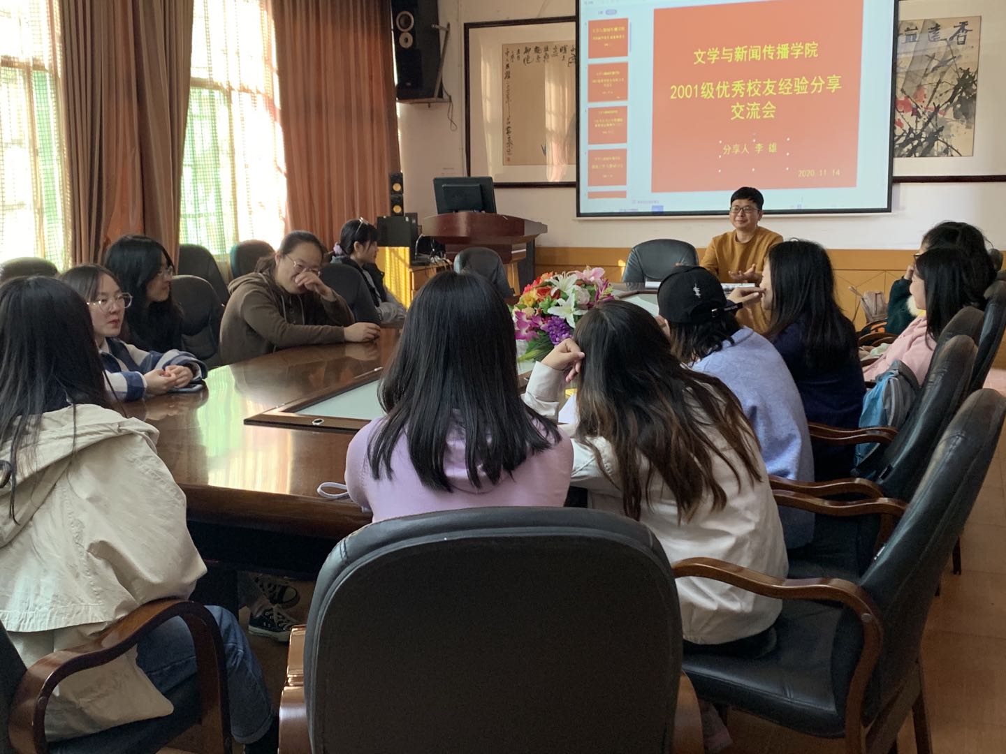 本网讯(通讯员李冰姿)为帮助学生了解新媒体行业,激发创业意识,我院于11月14日上午在影视鉴赏室举行了新媒体运营发展与创新创业讲座。2001级优秀校友李雄应邀参加讲解了新媒体行业创业就业的现状并分享了自己成功创业的经验,同时对本专业学生创业就业方面的问题进行答疑。辅导员吕定红主持本次会议。