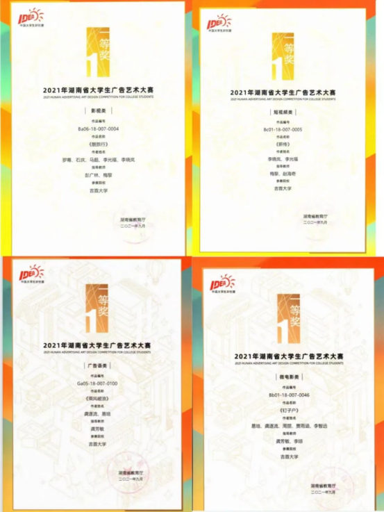 学生在2021年湖南省大学生广告艺术大赛获奖情况