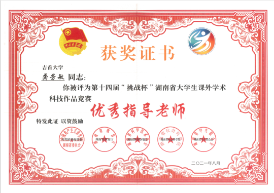 学院学生在第十四届“挑战杯”湖南省大学生课外学术科技作品竞赛中获得金奖